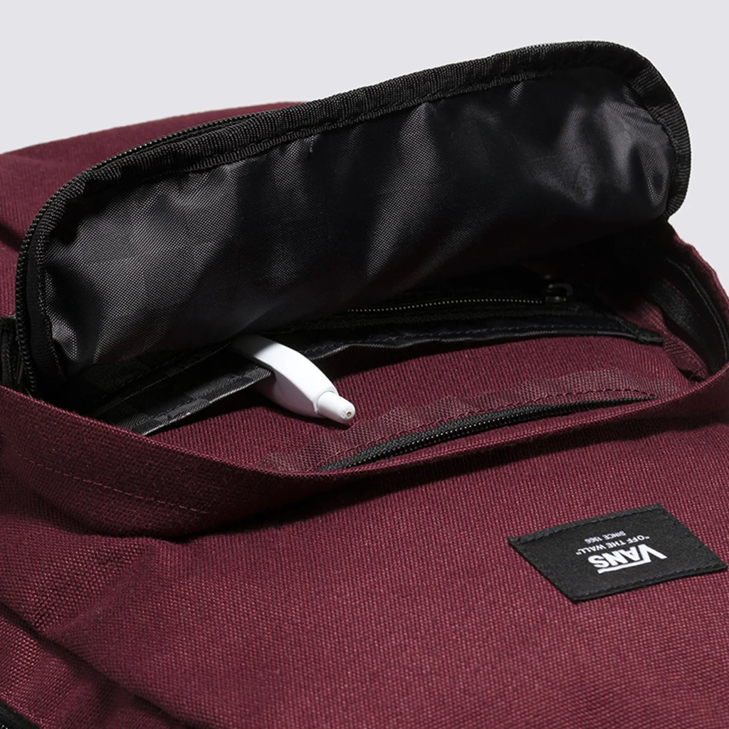 A Mochila Old Skool Trek Backpack Port Royale está destinada a se tornar sua nova favorita. Esta mochila clássica apresenta um design multifuncional de dois bolsos com um organizador na frente, um bolso interno deslizante, capa para notebook de 15” e um bolso lateral para garrafa de água. O modelo em dois tons e os detalhes tradicionais – como a etiqueta tecida Vans – trazem estilo para este design icônico. A equipe da Vans estabeleceu metas ambiciosas de sustentabilidade. Grandes ou pequenos, todos os esforços resultam em mudanças positivas. Para ganhar o logotipo do globo Checkerboard, pelo menos 30% do produto deve ser feito de um ou uma combinação de materiais reciclados, renováveis e/ou regenerativos. Para saber mais sobre a Vans® e sua jornada em direção a materiais sustentáveis, acesse www.vans.com.br/sustentabilidade.