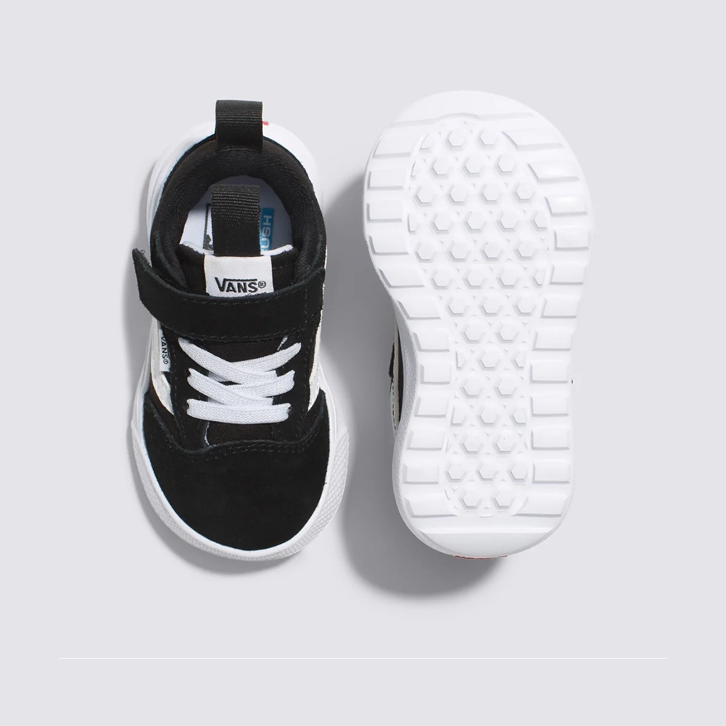 Máximo conforto e aliado de todas as rotinas para os pequenos. Esteja sempre pronto para o inesperado com o Tênis UltraRange 66 V Infantil Black True White. Com um solado co-moldado construído em padrão tratorado em waffle – exclusividade Vans – ele maximiza a cobertura, aderência e durabilidade da borracha. A nova entressola UltraCush™ Lite traz conforto e leveza para o calce. O modelo de cano baixo possui cabedal com inspiração na silhueta do icônico Old Skool – em camurça, tecido e sintético – totalmente respirável, com biqueira e antepé de borracha renovado, deixando o calce no ajuste ideal, com amarração e fecho em velcro. O Exo Skeleton fornece apoio integrado nos dedos e na parede lateral medial, com uma trava de calcanhar para um ajuste seguro. No calcanhar e lingueta, traz puxadores, facilitando o calce. O logo “Vans Off The Wall” é aplicado na heeltab do calcanhar. Já a original Flag vem na lateral do tênis, enquanto a assinatura “Vans Ultrarange” é aplicada na lingueta. Conforto e estilo para os pequenos, onde a única preocupação é se divertir ao máximo. Características do produto: • Tênis de cano baixo icônico com Sidestripe™ feito para crianças pequenas • Fecho em velcro • Suporte completo – O EXO Skeleton oferece suporte integrado nos dedos dos pés e na parede lateral medial, com trava no calcanhar para um ajuste seguro. • UltraCush™ para conforto – A entressola co-moldada UltraCush™ Lite aumenta o conforto, não o peso. • Aderência – As solas com padronagem em waffle invertida e tratorada totalmente envoltas em borracha melhoram a tração e a flexibilidade. • Respiração aumentada – Uma lingueta UltraCush™ com orifícios de respirabilidade oferece fluxo de ar superior. • Materiais – Cabedais de camurça premium, tecido e sintético proporcionam uma aparência e sensação elevadas.