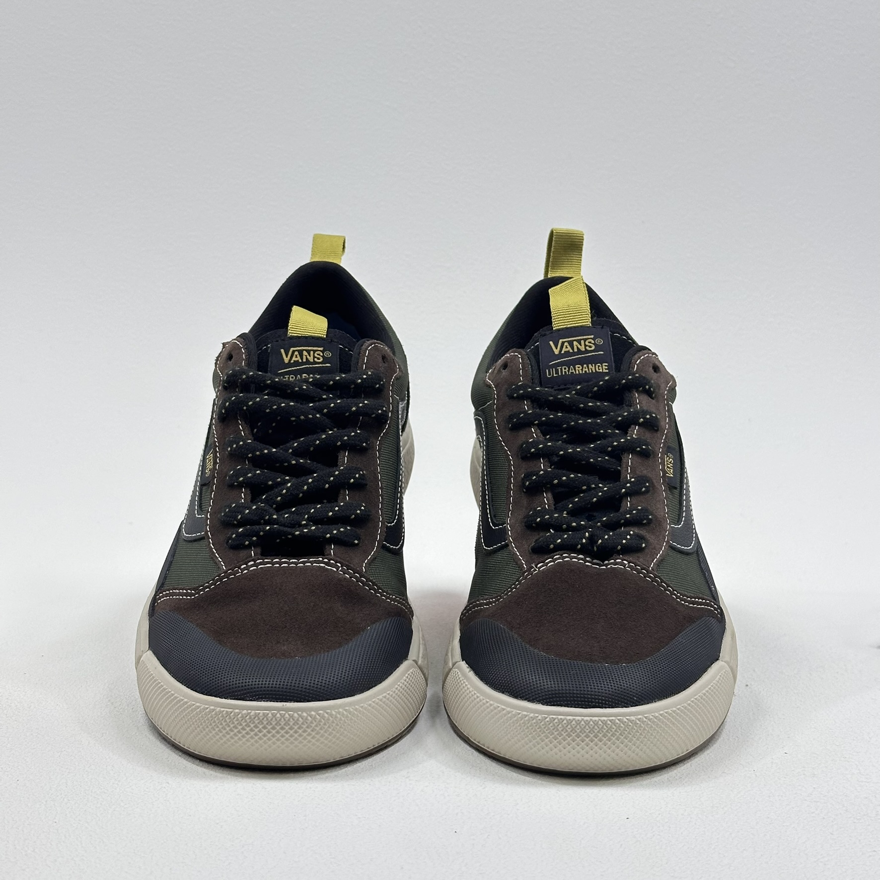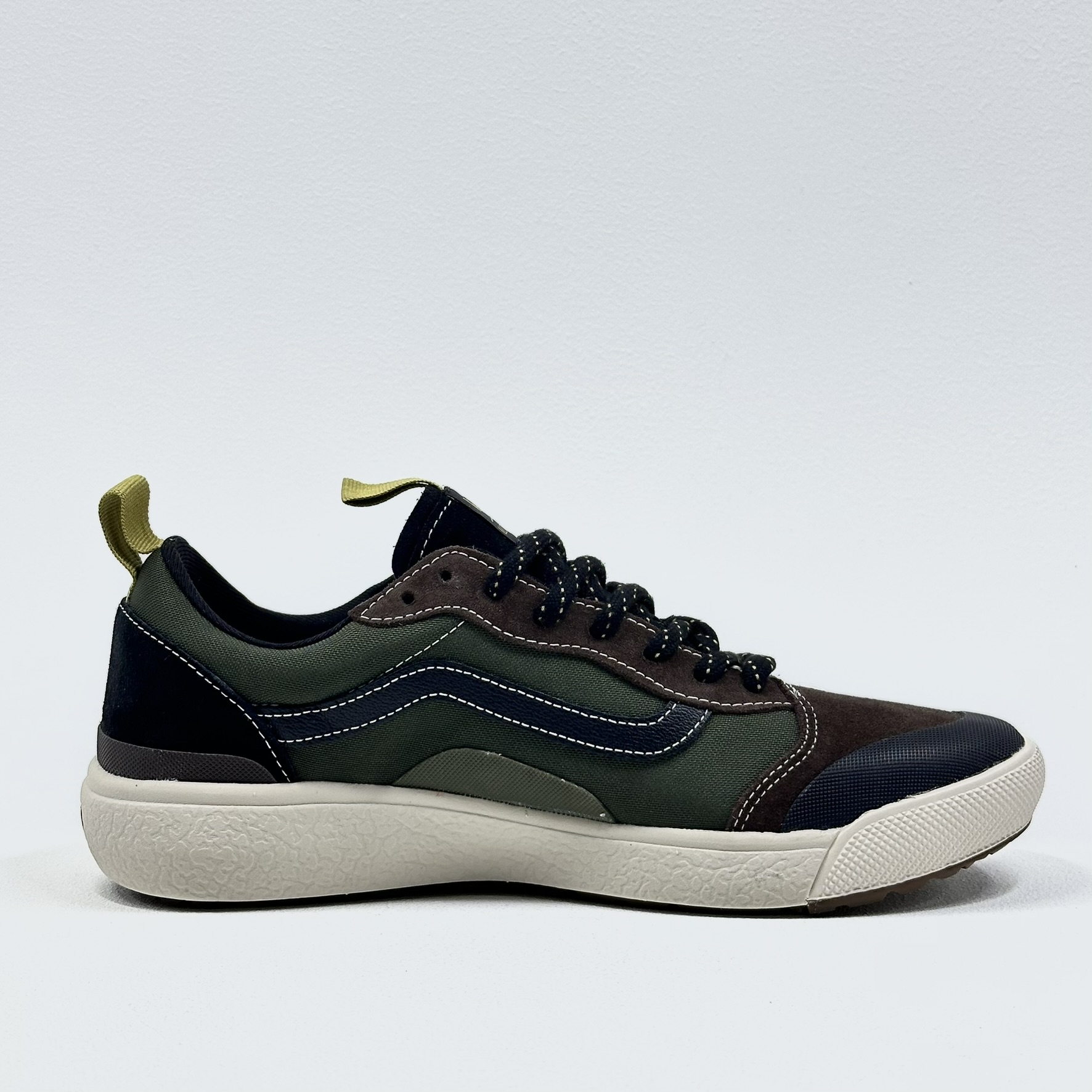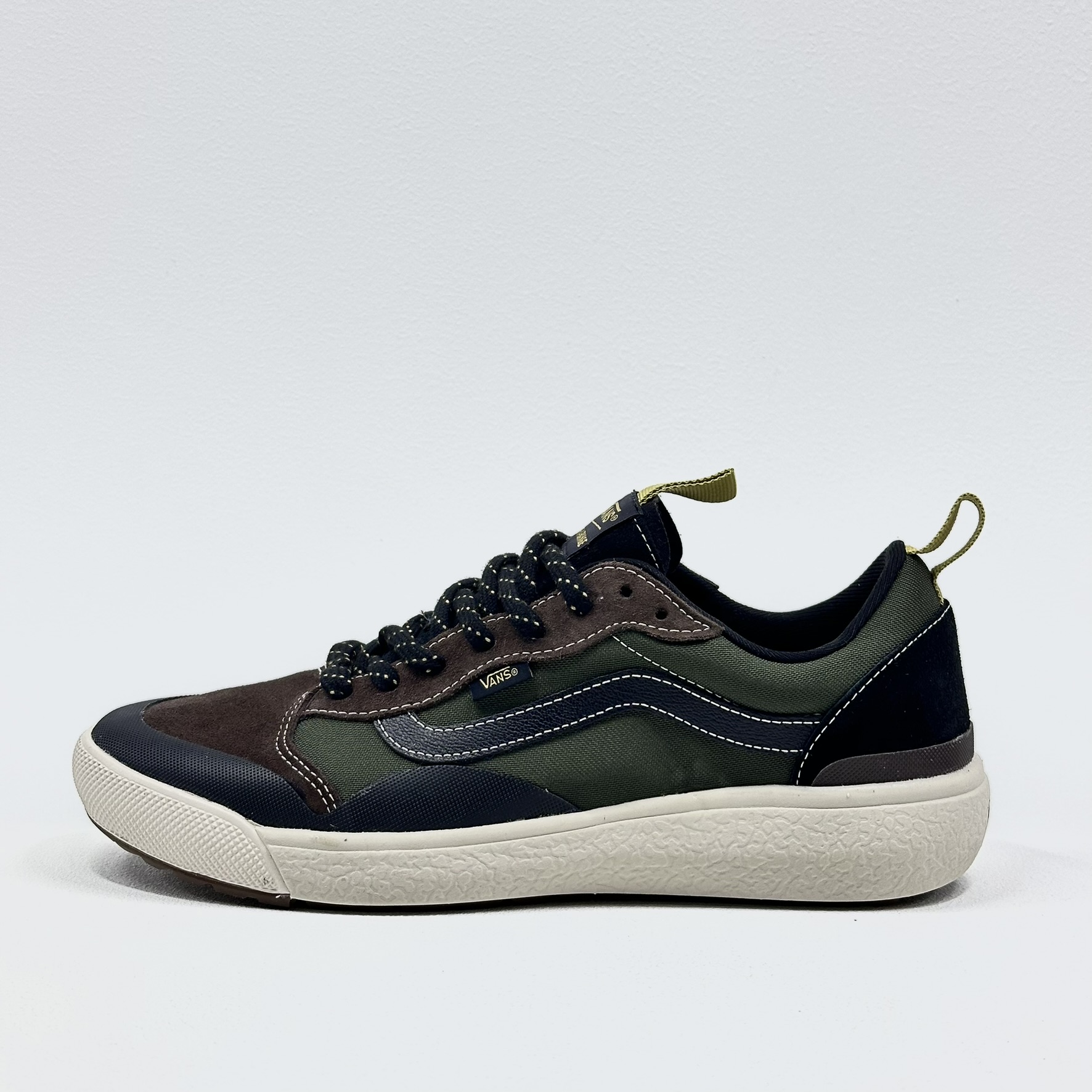 Máximo conforto e aliado de todas as rotinas. Esteja sempre pronto para o inesperado com o Tênis Ultrarange Exo Se Ultrarange Exo Black Olive. Com um solado co-moldado construído em padrão tratorado em waffle – exclusividade Vans – ele maximiza a cobertura, aderência e durabilidade da borracha. A nova entressola UltraCush™ Lite traz conforto e leveza para o calce. O modelo de cano baixo possui cabedal com inspiração na silhueta do icônico Old Skool – em camurça, tecido e sintético – totalmente respirável, com biqueira e antepé de borracha renovado, deixando o calce no ajuste ideal. O Exo Skeleton fornece apoio integrado nos dedos e na parede lateral medial, com uma trava de calcanhar para um ajuste seguro. No calcanhar e lingueta, traz puxadores, facilitando o calce. O logo “Vans Off The Wall” é aplicado na heeltab do calcanhar. Já a etiqueta tecida Vans em checkerboard vem na lateral do tênis, enquanto a assinatura “Vans Ultrarange” é aplicada na lingueta. Conforto e estilo dentro e fora das pistas. Características do produto: